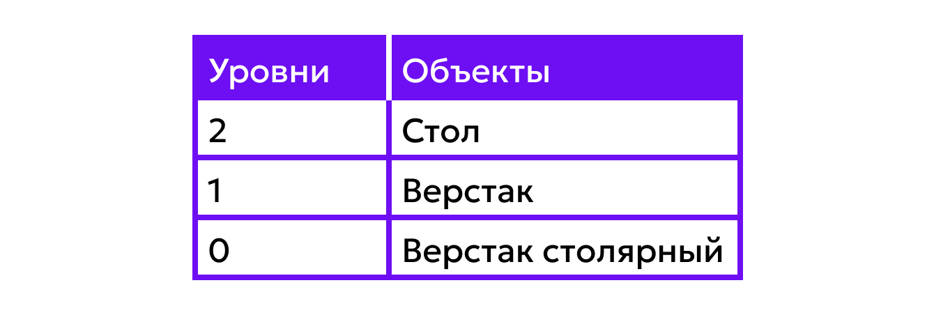 1. Определяем объект и «погружаем» его на нулевой уровень — получаем объект «верстак столярный».