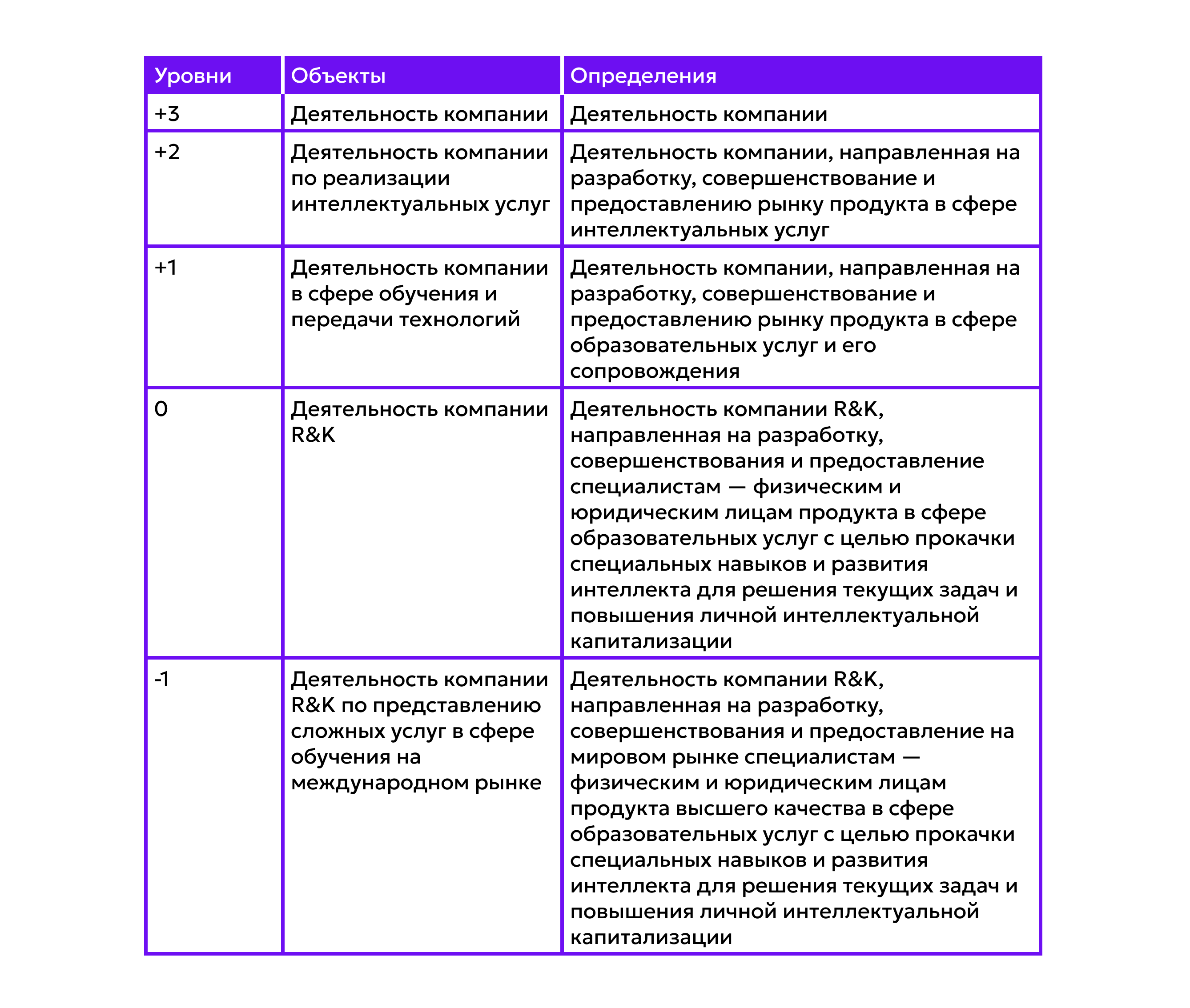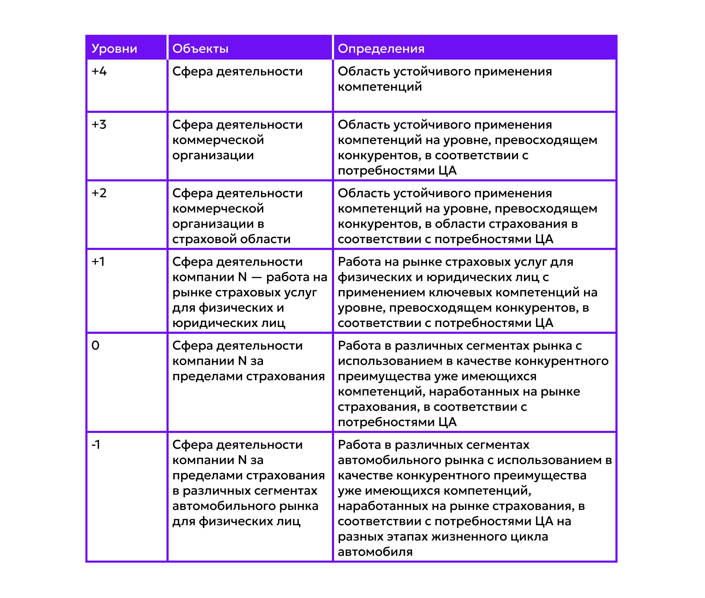 1. Составлена карта компетенций компании. Компетенции, в которых компания превосходила конкурентов (преимущества), были отмечены знаком «+».